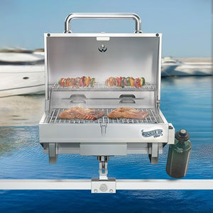 - DURABLE AND LONG-LASTING - Our Boat Grill is constructed with 100% stainless steel, ensuring a lasting investment boating endeavors. This portable propane grill resists corrosion, making it great for outdoor use.
